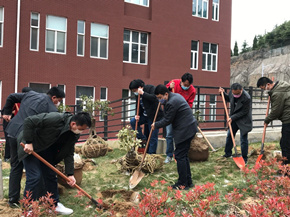 各党支部将植树活动与本月主题党日有机结合,党员们热情高涨,搬运树苗、挥锹挖坑、填土栽种,大家分工协作、配合默契,经过四个下午的努力,百余株桂花、核桃等树苗在园区办公楼前形成了一道道靓丽的风景线。