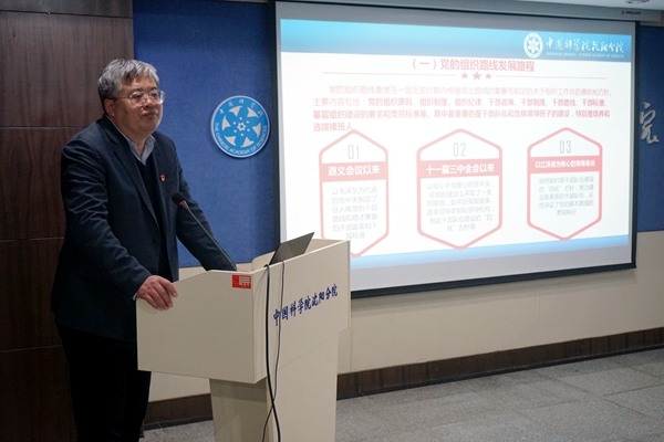 在报告中,于海斌从“新时代党的组织路线”、“贯彻落实新时代党的组织路线”和“新时代党组织和党员干部的担当”三个方面系统阐述了新时代党的组织路线的重大意义和深刻内涵,并对各级党组织和党员干部贯彻落实好新时代党的组织路线提出了工作要求,同时结合习近平总书记在科学家座谈会上的讲话精神,以及白春礼院长在国新办发布会上的讲话精神,对科技干部队伍贯彻落实好新时代党的组织路线指明了方向。最后,于海斌要求全体党员干部要牢固树立“四个意识”,保证学习贯彻工作落实到位,要把学习贯彻工作体现在具体的工作成效之中,为研究所四类机构改革和中科院“率先行动”计划的开展不断做出新的贡献。