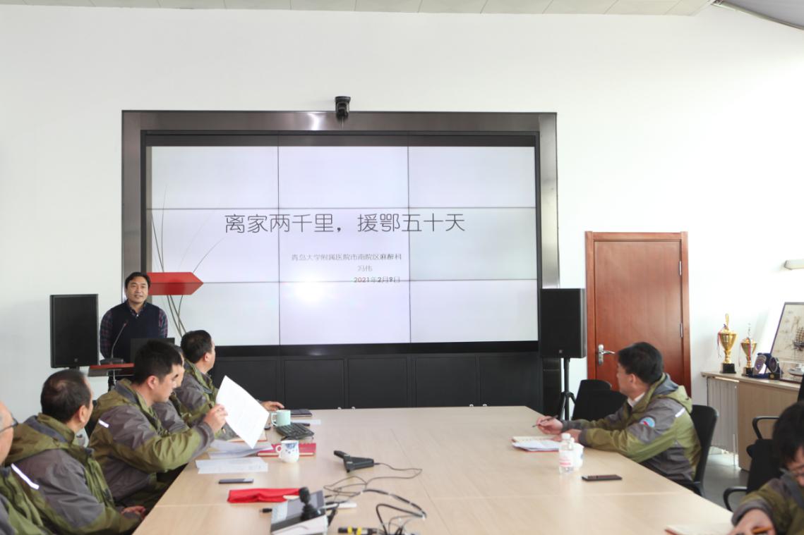 为贯彻落实习近平总书记在全国抗击新冠肺炎疫情表彰大会上的讲话精神,充分发挥先进典型示范引领作用,激励广大党员干部的自信心和自豪感、凝聚力和向心力,结合春节假期疫情防控工作,2月9日上午,科考船运管中心党支部组织召开党员大会暨“不忘初心当先锋,疫情防控党旗红”主题党日活动,邀请青岛大学附属医院市南院区麻醉科副主任、山东省第7批援鄂医疗队队员冯伟同志讲授《离家两千里,援鄂五十天》抗疫专题党课。所党委委员、科考船运管中心党支部书记李雷溪同志主持会议。