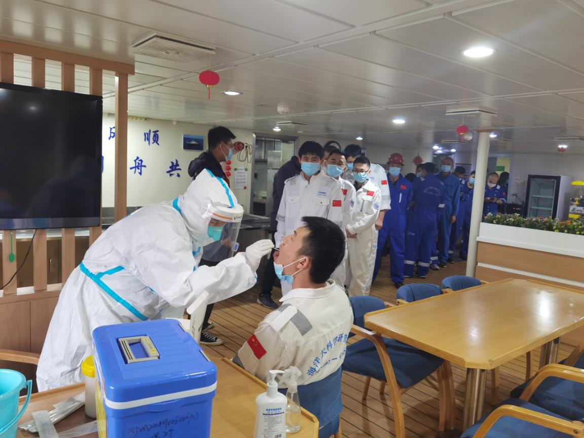 船舶具有流动性强、环境条件特殊、在岗人员多、工作生活空间密集等特点,为进一步落实船舶疫情防控工作,保障广大船员和科考队员的身体健康和生命安全,开航当天船舶运维部办公室党员姜汝翰组织协调对随船出海70多位人员进行了核酸检测。