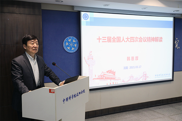 会上,韩恩厚从习近平总书记深入“两会”团组并发表重要讲话、政府工作报告、国民经济和社会发展第十四个五年规划和2035年远景目标纲要等七个方面细致地传达了十三届全国人大四次会议基本情况和主要精神,同时介绍个人建议内容与感悟,并结合大会精神对下一步工作提出意见建议。韩恩厚强调:习近平总书记就立足新发展阶段、贯彻新发展理念、构建新发展格局,推动高质量发展、创造高品质生活作出了一系列重要论述,高屋建瓴、思想深刻、内涵丰富,把握经济社会发展规律,彰显浓厚的为民情怀。两会成果丰硕,为开展下一阶段工作坚定了信心、指明了方向。