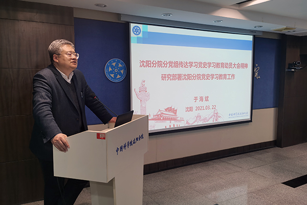 会上,于海斌作题为《传达学习党史学习教育动员大会精神 研究部署沈阳分院党史学习教育工作》专题报告,结合自身学习党史体会与工作实际,传达了习近平总书记在党史学习教育动员大会上的重要讲话精神,解读了院党史学习教育实施方案要求,对分院开展党史学习教育进行全面动员部署。
