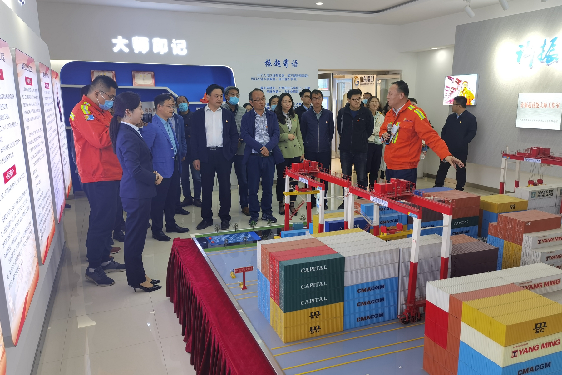 交流会后,山东省港口集团参观了中科院海洋生物标本馆、海洋人工智能与大数据中心,随后海洋所党员前往青岛港全自动化码头现场观摩了自动化码头现场作业、运营情况。在“许振超大师工作室”,大家听取了许振超同志的先进事迹、劳模创新工作室在推动企业技术进步方面的引领和示范情况介绍。