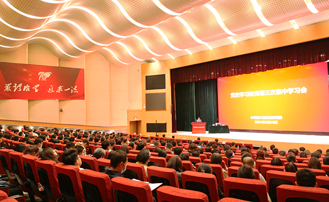 为进一步推动党史学习教育深入开展,根据党史教育工作计划安排,5月10日,中国科学院大连化学物理研究所党委召开党史学习教育第三次集中学习会,邀请中央党史和文献研究院齐彪教授作题为《历史大势与历史抉择——中国共产党100年》专题辅导报告。所党委委员,各党组织书记、副书记、委员,研究室(部)党员代表,以及职能部门全体人员共计400余人参加学习会。党委书记金玉奇主持学习会并讲话。