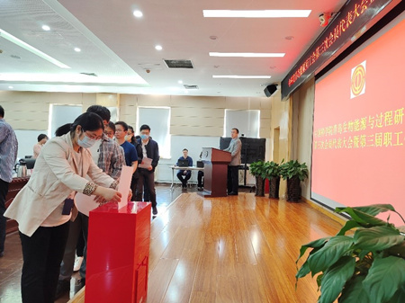 按照大会通过的《工会第三次会员代表大会暨第三届职工代表大会选举办法》,大会以无记名投票的方式采取差额和等额选举的办法,分别选举产生了新一届工会委员会、经费审查委员会和女职工委员会。会后,第三届三委召开了第一次会议,通过无记名投票,徐峰当选为第三届工会主席,王君当选为工会常务副主席,孙红燕当选为经费审查委员会主任,刘佳当选为工会女职工委员会主任。