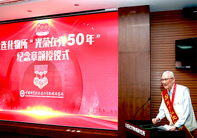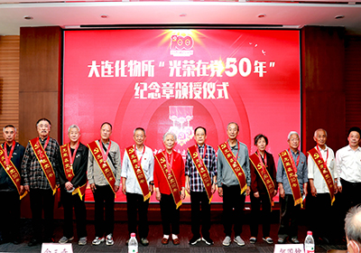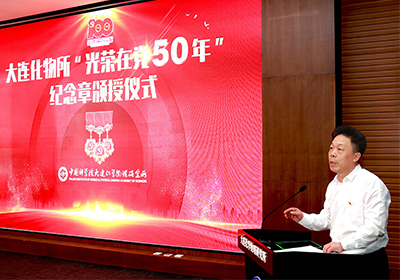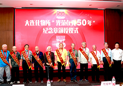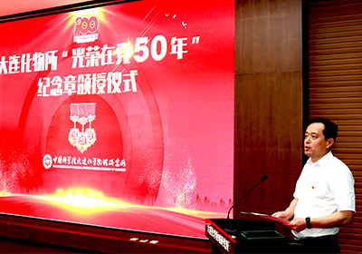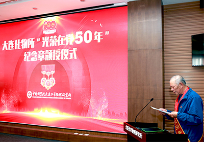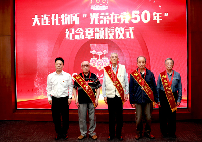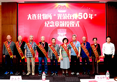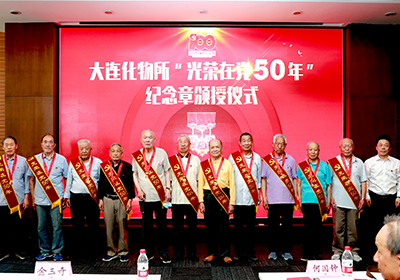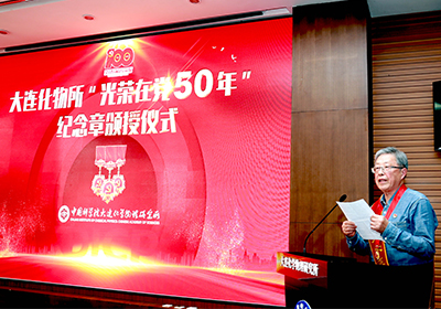 6月18日,中国科学院大连化学物理研究所隆重举行“光荣在党50年”纪念章颁授仪式。大连化物所院士何国钟,老领导陈庆道、李文钊等50余名矢志不渝、饱经风霜的老党员代表出席仪式,获颁金灿灿的纪念章。所党委书记金玉奇作总结讲话,所党委副书记、纪委书记毛志远主持仪式。