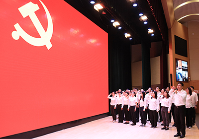 会议首先举行了新党员入党宣誓仪式,二十余名新近加入党组织的预备党员在大连化物所党委委员孙军的带领下,面向党旗,庄严宣誓。