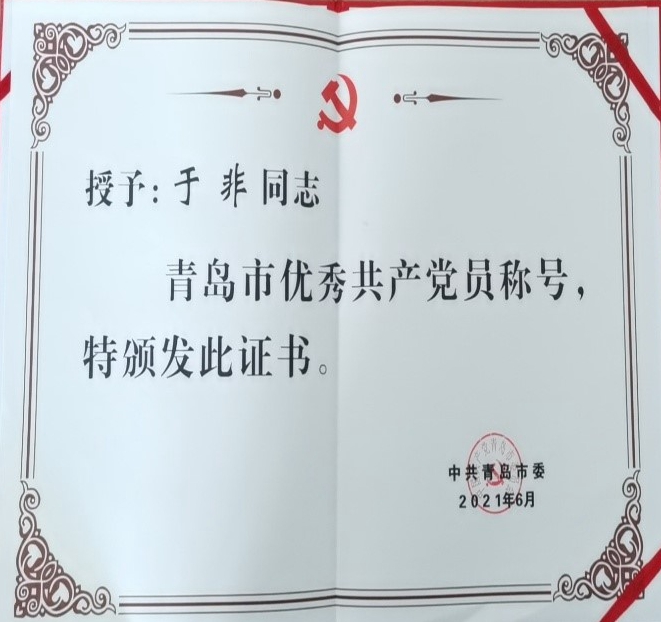 为隆重庆祝中国共产党成立100周年,引导激励全市各级党组织和广大党员干部深入学习贯彻习近平新时代中国特色社会主义思想,进一步凝聚力量,加快建设开放、现代、活力、时尚的国际大都市,6月28日下午,中共青岛市委举办“两优一先”表彰大会,197名同志获“青岛市优秀共产党员”,130名同志获“青岛市优秀党务工作者”,119个基层党组织获“青岛市先进基层党组织”。海洋研究所科考船运管中心总工程师、研究员、海洋环境调查领域知名学术带头人于非同志喜获“青岛市优秀共产党员”表彰。