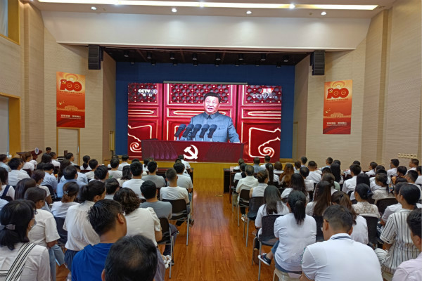 7月1日上午,庆祝中国共产党成立100周年大会在北京天安门广场隆重举行,中共中央总书记、国家主席、中央军委主席习近平发表重要讲话。中国科学院烟台海岸带研究所组织党员集中收看了大会的实况直播。