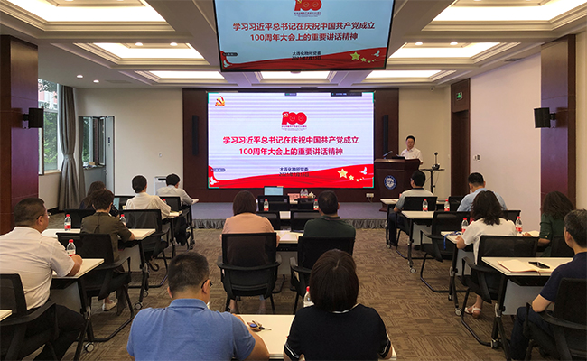 7月15日上午,中国科学院大连化学物理研究所党委召开中心组扩大学习会议,大连化物所党委书记金玉奇主持会议并领学习近平总书记在庆祝中国共产党成立100周年大会上的重要讲话精神,副所长、党委委员王峰领学习近平总书记在广西、青??疾焓钡闹匾不熬?。全体党委委员、职能部门全体副处级以上党员干部列席参加学习。