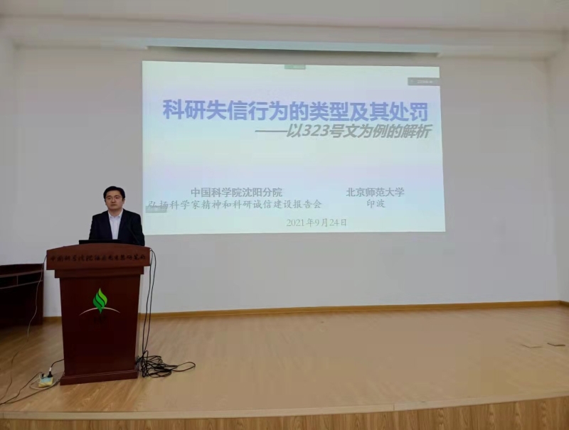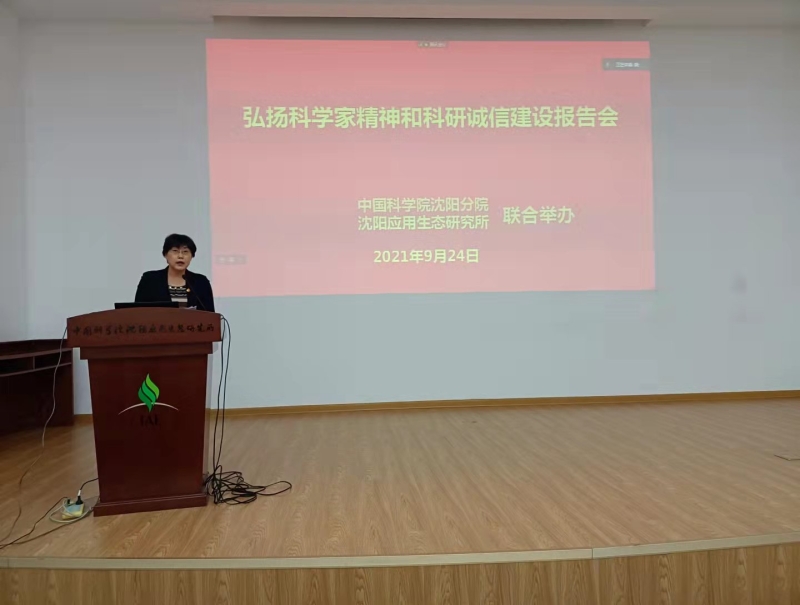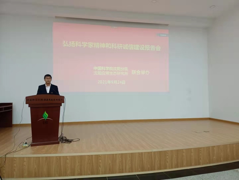 2021年9月24日,沈阳分院联合沈阳应用生态研究所举办分院系统单位弘扬科学家精神和科研诚信建设报告会,会议邀请中国科学院院士、金属研究所李依依研究员、北京师范大学副教授印波、中国科学院科研诚信办公室主任侯兴宇作报告。沈阳应用生态研究所设主会场,沈阳分院和系统各单位设视频分会场,系统各单位科研诚信建设分管领导、科研诚信建设相关处室负责人、科研诚信专员、支部书记、部分科研人员和研究生500余人参会。