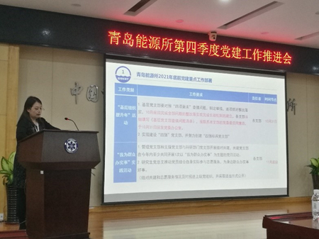 会上,党委办公室针对青岛能源所《党总支(党支部)工作考核办法》(修订稿)进行了说明并征求意见,全面梳理并部署了年底前的基层党建重点工作。