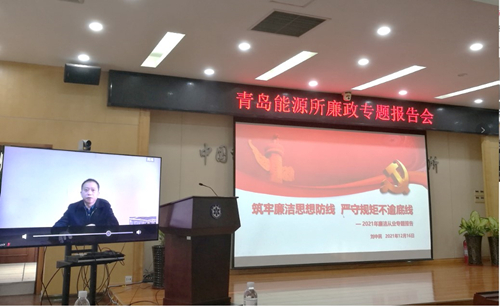 为贯彻落实全面从严治党走深走实,严格落实党风廉政建设责任制要求,12月16日,青岛能源所召开党风廉政专题报告会,研究组组长、研究员、副处级以上领导干部,共产党员、民主党派及无党派人士等220余人参加了会议?;嵋橛杉臀榧抢蠲髦鞒?。