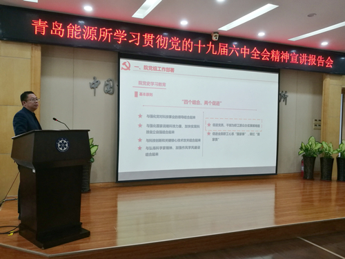 12月16日上午,青岛能源所召开学习贯彻党的十九届六中全会精神宣讲报告会,研究所党员、团员、民主党派及无党派人士、副处级以上领导干部、研究员、研究组组长等220余人参加了会议。会议由纪委书记李明主持。