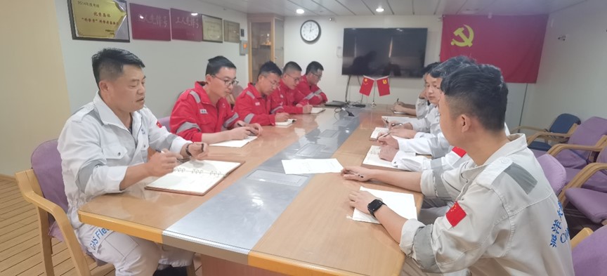 重温五四岁月,拨动时代心弦。为弘扬五四精神,激励广大青年党员团员坚定远大理想、勇挑时代重担、厚植爱国主义情怀, 5月4日,正在坞修的“科学”号科考船组织开展“弘扬五四精神,凝聚青春力量”主题党日团日活动。
