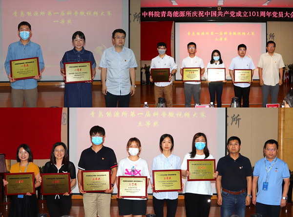 会上党委委员为研究所“讲身边人、说身边事”主题演讲比赛获奖人员和研究所第一届科普微视频大赛获奖团队代表颁发了荣誉证书和奖牌。