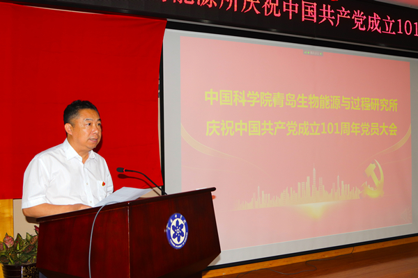 在中国共产党成立101周年来临之际,6月29日下午,青岛能源所召开了庆祝中国共产党成立101周年党员大会,会议由党委副书记徐峰主持。按照疫情防控要求,本次会议以“主会场+视频分会场”形式召开,研究所全体党员和入党积极分子350余人参加了会议。