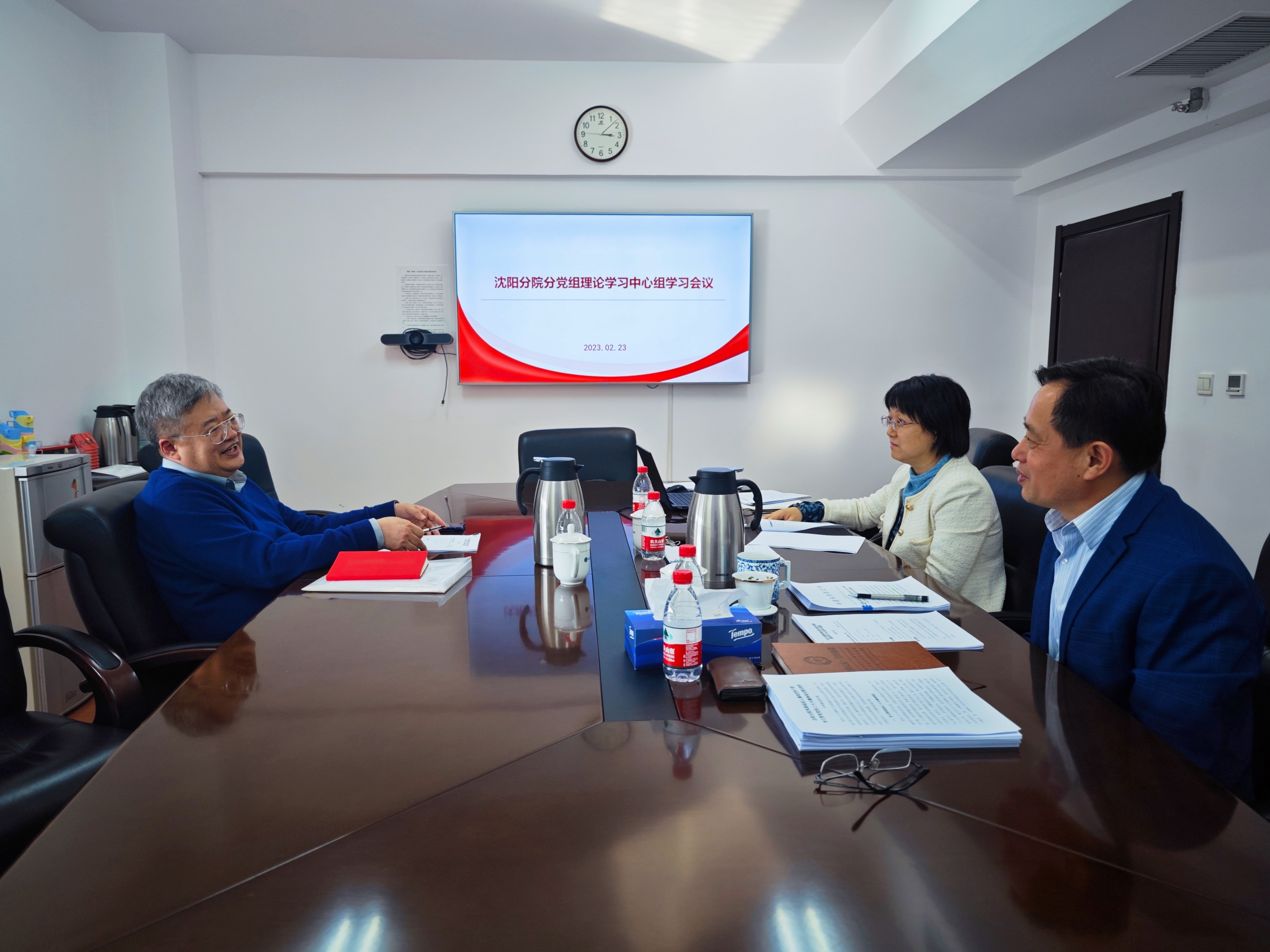 2月23日,沈阳分院分党组理论学习中心组召开学习会议,认真传达学习习近平总书记在学习贯彻党的二十大精神研讨班开班式上的重要讲话精神及院2023年度工作会议精神。沈阳分院分党组书记、院长于海斌,分党组副书记毛志远,纪检组组长、分党组成员杨宏参加会议?;嵋橛捎诤1笾鞒帧?