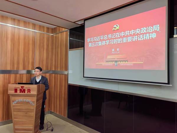 2月24日,金属所党委理论学习中心组召开扩大会议,认真学习贯彻习近平总书记在中共中央政治局第三次集体学习会上的重要讲话精神、二十届中央纪委二次全会精神、中科院2023年度工作会议精神,党委书记、副所长徐岩主持会议,党政班子成员、职能部门主要负责人参加会议。