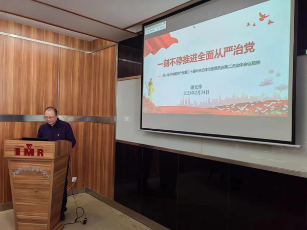 随后,党委副书记、纪委书记谢光锋作了题为“一刻不停推进全面从严治党”的主题报告,传达学习了二十届中央纪委二次全会精神。谢光锋指出,二十届中央纪委二次全会是全面开启新时代新征程关键节点上召开的一次重要会议,习近平总书记发表重要讲话,强调要站在事关党长期执政、国家长治久安、人民幸福安康的高度,把全面从严治党作为党的长期战略、永恒课题,始终坚持问题导向,保持战略定力,发扬彻底的自我革命精神,永远吹冲锋号,把严的基调、严的措施、严的氛围长期坚持下去,把党的伟大自我革命进行到底。要把学习贯彻习近平总书记重要讲话精神和中央纪委二次全会精神与学习贯彻党的二十大精神结合起来,把握精神实质,学懂弄通做实,提高一体推进不敢腐、不能腐、不想腐的能力和水平。