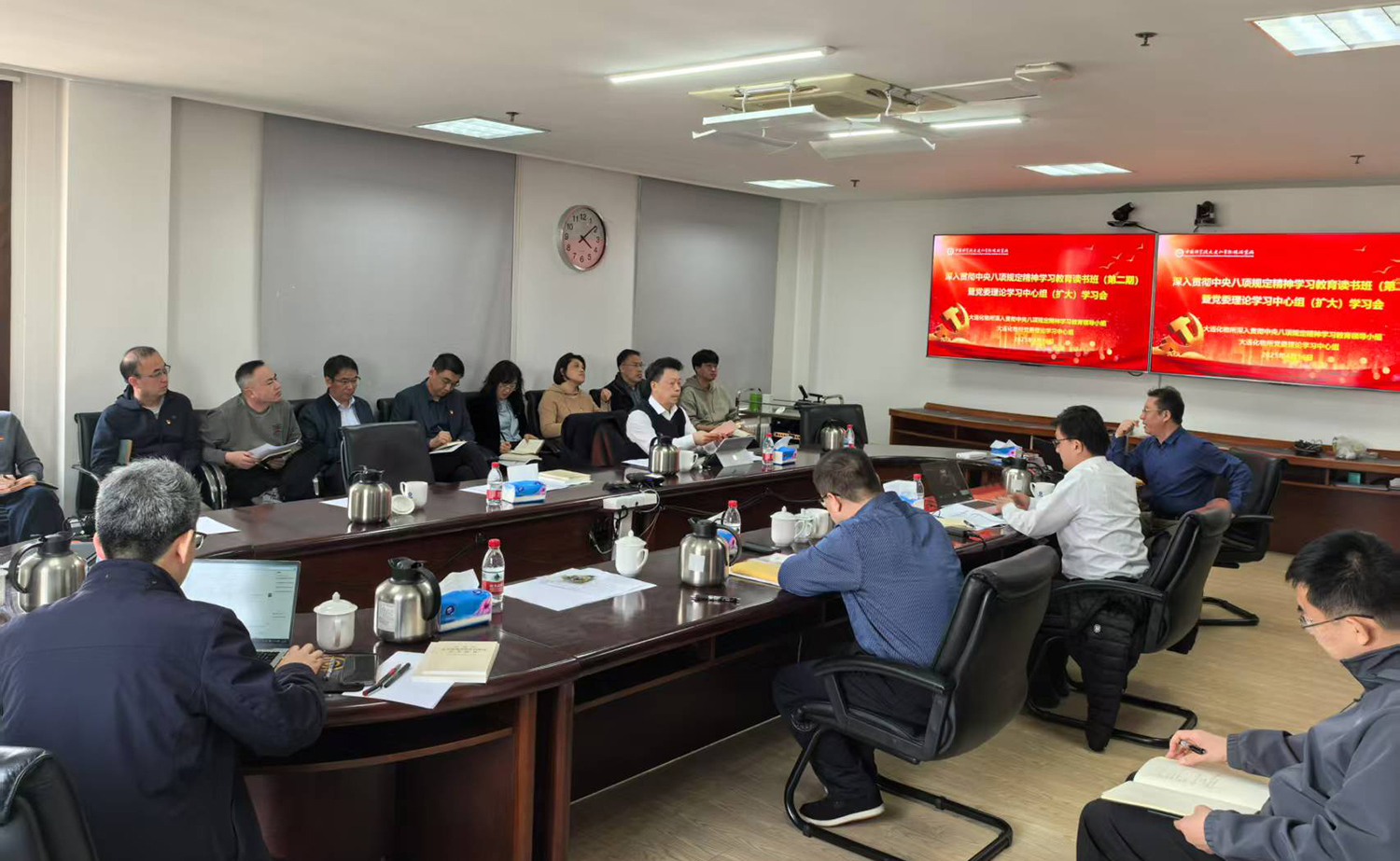 4月16日,大连化物所党委举办深入贯彻中央八项规定精神学习教育读书班(第二期),读书班由党委书记金玉奇主持,党委副书记、纪委书记梁波领读领学《习近平关于加强党的作风建设论述摘编》第一、二专题并作重点交流发言,全体党委委员、职能部门副处级以上干部参加读书班。