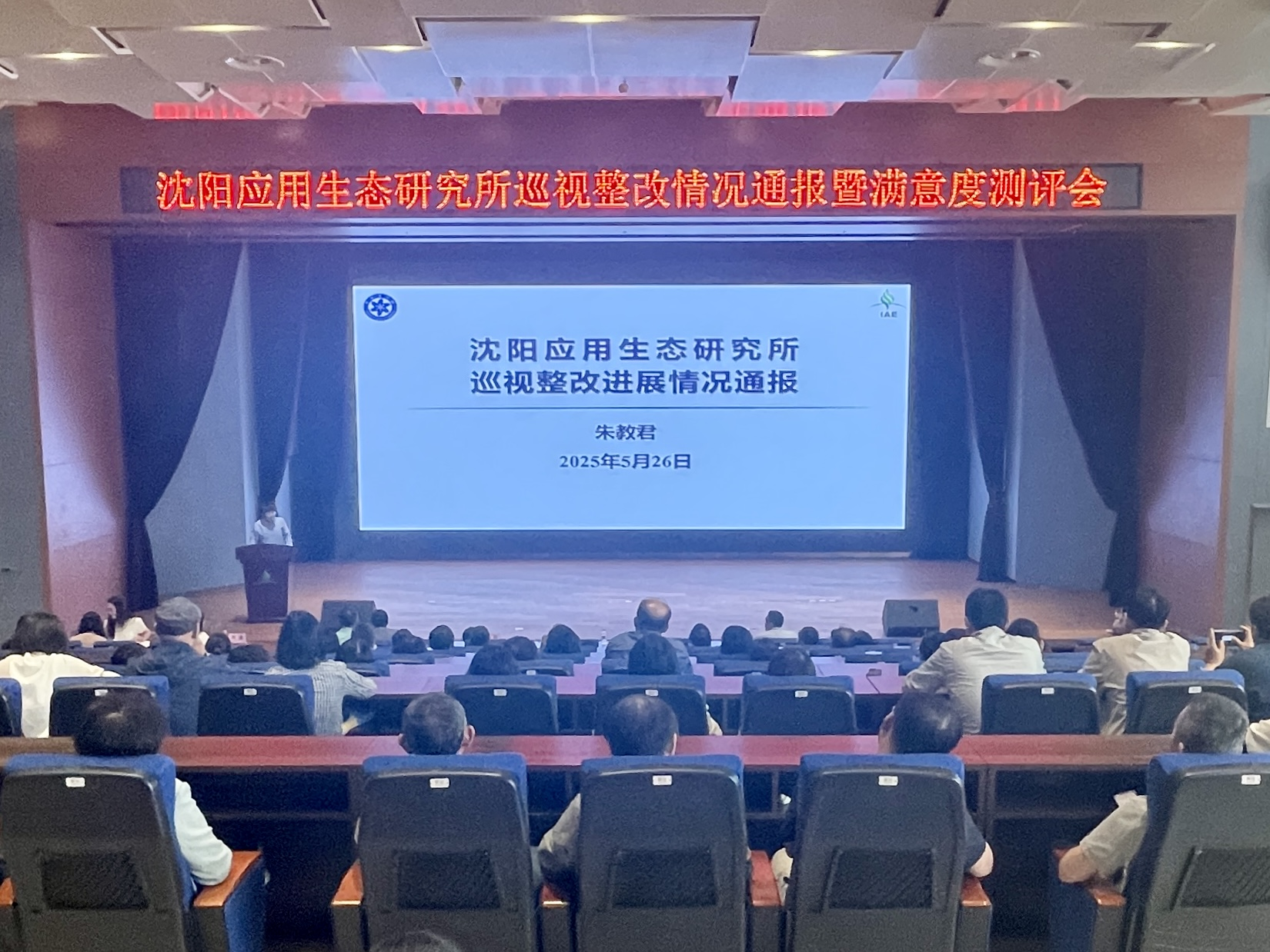 5月26日下午,沈阳生态所召开巡视整改情况通报暨满意度测评大会。沈阳分院有关同志到会指导,所领导班子成员,党委委员,纪委委员,实验室、课题组负责人,党支部以及职代会、工会、团委、妇委会、学生会等群团组织负责人,副高及以上专业技术职务人员、六级及以上职员等近160人参加会议?;嵋橛傻澄榧?、副所长金昌杰主持。
