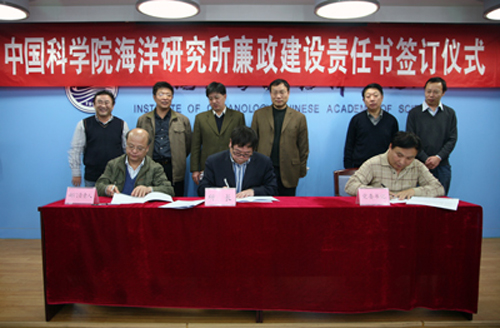 会议期间,所长孙松、党委书记王启尧分别与各研究单元负责人、管理与支撑部门负责人在《中国科学院海洋研究所党风廉政建设责任书》上签字。