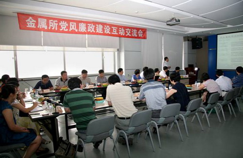 沈阳分院于2011年7月14日在沈阳召开了金属所党风廉政建设互动交流会。就研究所有特色的反腐倡廉工作在纪监审干部之间进行专题性互动交流是沈阳分院创新互动工作方式的一个探索,金属所是沈阳分院计划今年进行党风廉政建设现场交流互动的第二个单位。沈阳分院副院长、纪检组长韩恩厚主持了交流会,大化所党委书记、纪委书记包翠艳、金属所党委副书记、纪委书记王忠明、沈阳生态所党委书记、纪委书记姬兰柱、海洋所党委书记、纪委书记王启尧、青岛能源所党委书记、纪委书记赵汐潮、烟台海岸带所党委书记、纪委书记高玲瑜、沈阳计算公司纪委书记吕立及各单位纪监审工作人员26人参加了交流会。