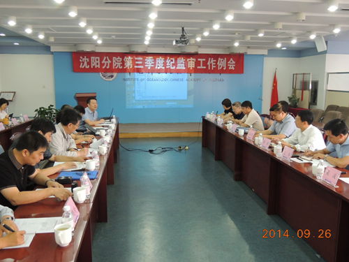 本次会议的主要内容是,传达院反腐倡廉重点工作研讨会精神,部署沈阳分院系统第四季度纪监审重点工作,交流各单位有特色的重点工作进展,现场观摩海洋所科研物资集中采购系统和所务公开的有关情况。