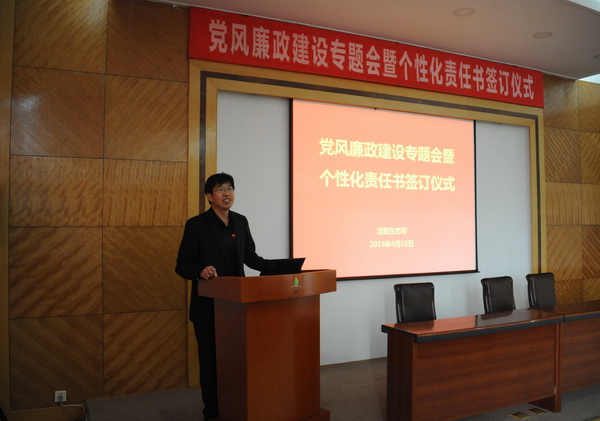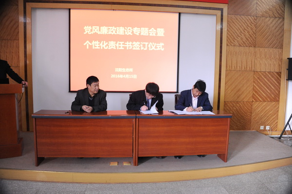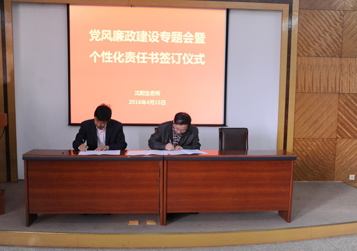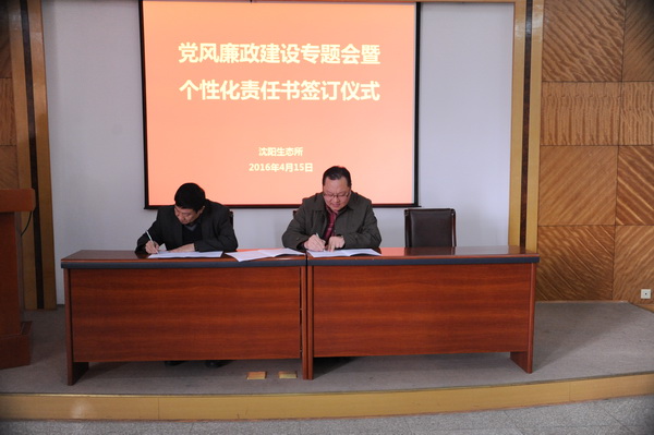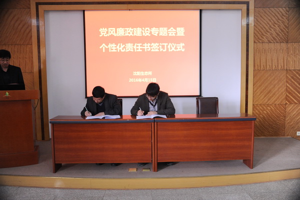 为全面推进落实“两个责任”和“一岗双责”,进一步加强我所党风廉政建设和反腐败工作,4月15日,中国科学院沈阳应用生态研究所举行了党风廉政建设专题会暨个性化责任书签订仪式,对进一步推进党风廉政建设和反腐败工作进行部署。所领导班子成员、党委委员、纪委委员、学科组组长、管理与支撑部门负责人、野外台站站长、控股公司总经理及机关工作人员等60余人出席会议?;嵋橛缮蜓羯彼ぁ⒌澄笔榧?、纪委书记郭秀银主持。