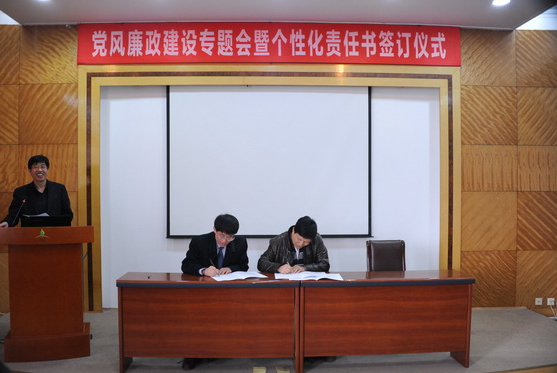 随后举行了党风廉政建设责任书或廉洁从业责任书签订仪式,所长、党委书记与领导班子其他成员,所领导与各自分管业务部门负责人、学科组组长分别签订了责任书。会议要求:会后各部门负责人与副职、关键岗位人员签订廉洁从业承诺书;学科组组长与组内关键岗位人员、行政秘书签订廉洁从业承诺书。