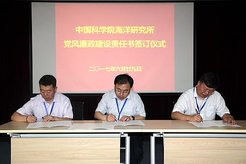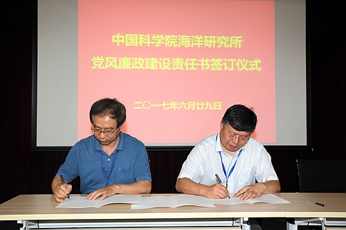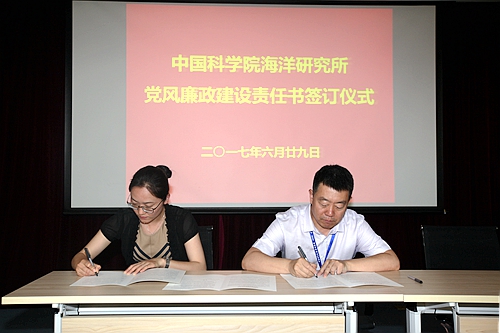 根据《中国科学院海洋研究所党风廉政建设责任制实施细则》规定,党风廉政建设责任书实施逐级签订,体现个性化岗位责任,管理与支撑部门负责人、研究室/中心负责人、研究组负责人均需与分管所领导签订《党风廉政建设责任书》或《反腐倡廉建设责任书》;管理与支撑部门人员和研究组人员也需与部门负责人签订《廉洁从业承诺书》。此项工作将由监审处负责在近期内完成。