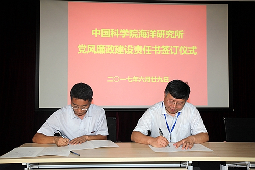 为深入贯彻落实党中央、国务院《关于实行党风廉政建设责任制的规定》和《中国科学院党风廉政建设责任制实施办法》,按照《中国科学院海洋研究所党风廉政建设责任制实施细则》要求,海洋研究所进一步明确各部门以及各研究单元在党风廉政建设中应承担的主体责任,切实落实“一岗双责”。