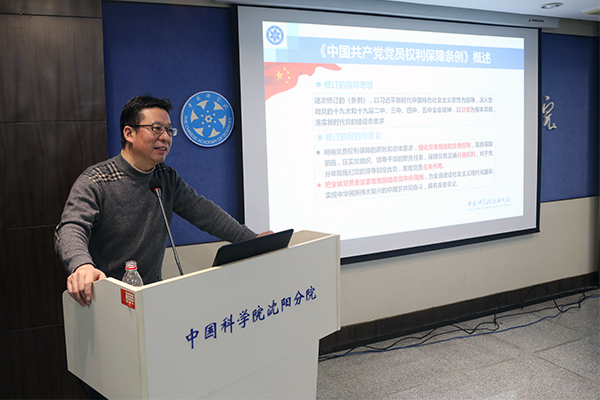 在会议中,分院纪检组成员、沈阳自动化所纪委书记梁波作传达学习《中国共产党党员权利保障条例》专题报告,分别从条例的基本情况、修订亮点、对条例全文的重点解读及如何在监督执纪中保障党员权利四个方面进行详细阐述,他表示,分院系统各单位纪监审干部要加强对条例的学习,并在监督执纪工作中按照条例规定充分保障党员权利的行使。