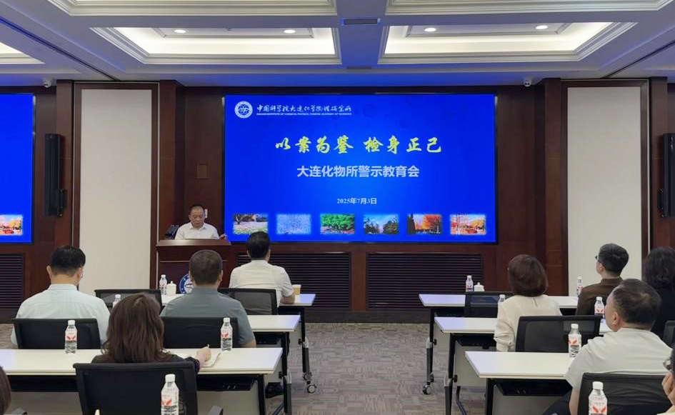 7月3日下午,大连化物所组织召开2025年警示教育会。在所所领导、所务委员、党委委员、纪委委员,研究室(部)主任(部长)、研究组组长(含创新特区组组长)、研究组秘书,以及职能部门全体参加会议?;嵋橛傻澄榧恰⒏彼そ鹩衿嬷鞒?。