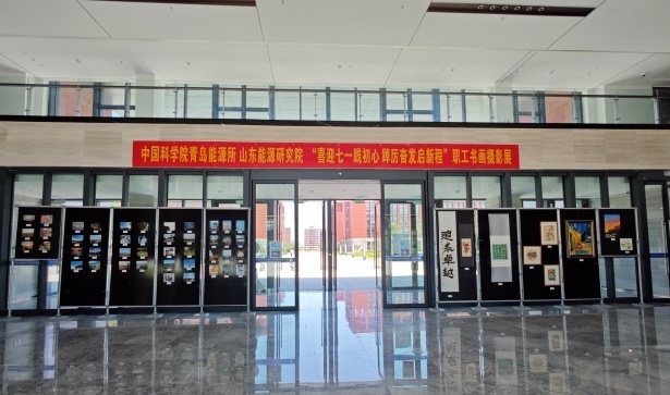 在新中国成立75周年和中国科学院建院75周年即将来临之际,6月28日上午,青岛能源所工会举办的“喜迎七一践初心 踔厉奋发启新程”职工书画摄影展在新园区综合楼大厅开展,共展出书画类作品11幅,摄影作品50余幅。全所职工们用手中的画笔和相机,书写绘制了对祖国、科学院及研究所的热爱之情,抒发表达了努力加强科研攻关,全力推动研究所抢占科技制高点核心任务的决心。