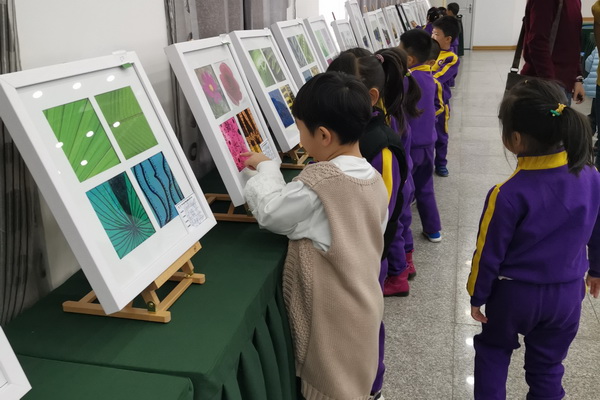 在“标本制作”环节中,通过现场演示,让学生了解如何采集制作植物标本,并发挥自己丰富的想象力用叶子作画。