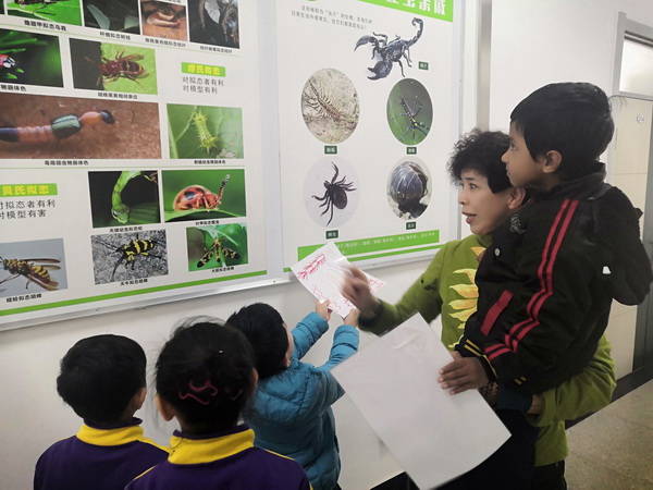 在“科普展览”环节中,通过对东北生物标本馆的参观,让孩子们亲身接触和了解昆虫和植物的生长变化,了解了由花至果的生长变化是如何发生的。