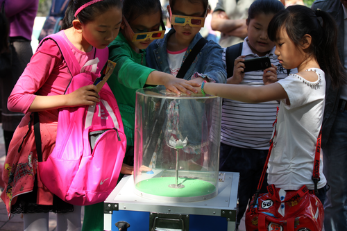 此次公众科学日活动也特别邀请到了辽宁省科技馆的科普大篷车,各种声光电展品呈现了一个科普乐园。玩的同时了解科学知识,激发孩子对科学的热爱和兴趣。17日、18日两天共有4700多名市民、学生走进中科院参观。