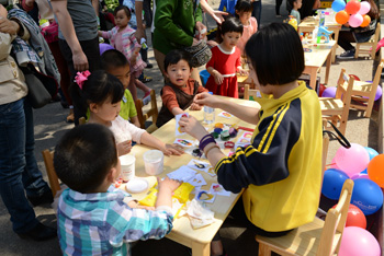 家属日活动还安排了适合学龄前儿童的体验式游戏、DIY手工制作、手绘涂鸦等活动。儿童互动体验区成为了欢乐的海洋。在这里,有的小朋友在做鸡蛋在盐水中浮起来的游戏,有的小朋友在试做肥皂水来吹泡泡,还有的小朋友拿起画笔描绘心中金属所美好的未来。