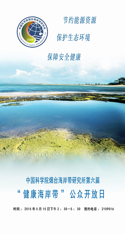 中国科学院烟台海岸带研究所定于2015年5月15日举办第六届“健康海岸带”公众开放日活动,本届活动主题为“科技创新服务民生——健康海岸带”,主要是向社会公众展示我所海岸科学研究的科技创新成果,普及海岸科学知识,激发社会公众关注海岸带生态健康,关注海岸带可持续发展。