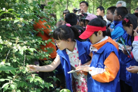 孩子们与植物专家互动