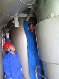 机舱烟囱内部辛勤作业