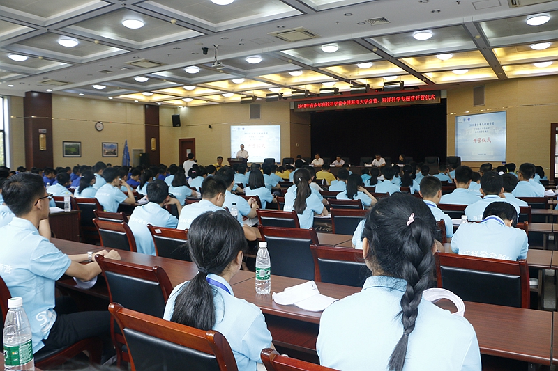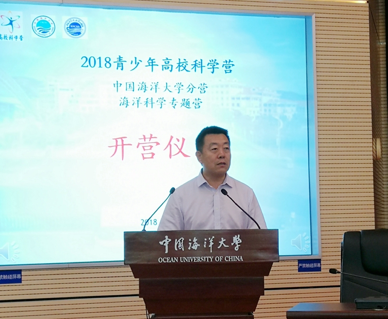 7月19日上午,2018年青少年高??蒲вQ罂蒲ёㄌ庥?、中国海洋大学分营开营仪式在中国海洋大学崂山校区举行。中国科学院海洋研究所党委副书记、纪委书记毕伟,中国海洋大学副校长李巍然,青岛市科学技术协会副主席王崇江等出席开营仪式。仪式由中国海洋大学团委书记王雪鹏主持,来自全国各地的200余名营员及带队老师参加了开营仪式。