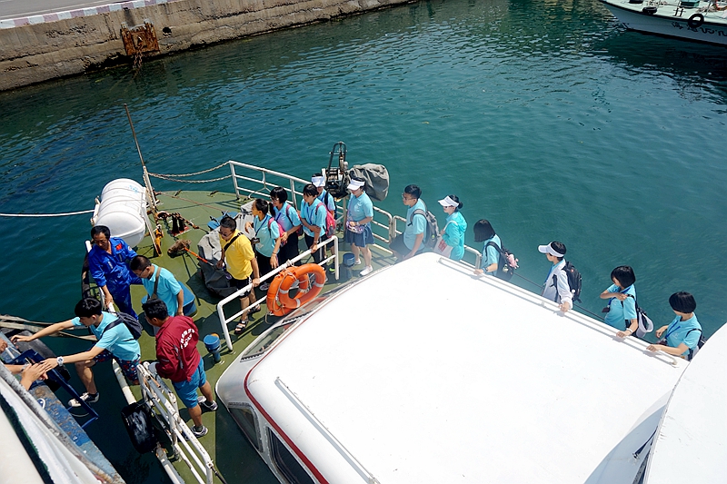 海上科学考察实践活动共分四个板块,分别是乘坐“创新”号科考船进行海上调查作业,在码头??康摹昂E浮焙趴瓶即峡垢∮沃参镉敫挥?、浮游动物与海洋生态系统食物链、食物网以及海洋污损生物知识讲解。