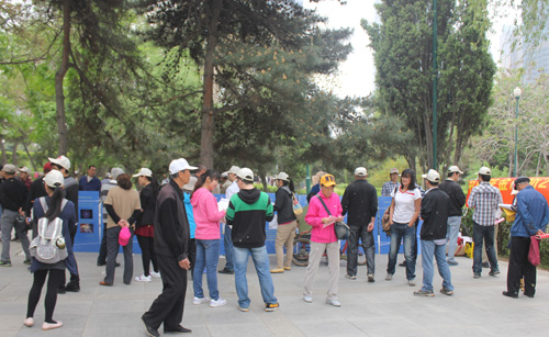 早晨8:30,科协的20名成员就抵达青年公园开始布展,当印有“中科院金属所2013年科普活动——材料改变生活”的条幅迎风展开时,吸引了数百名游园市民前来参观。参观者中有带孩子的母亲,朴实的农民工,逛公园的游人,还有从辽沈晚报上看到金属所的科普活动,专门赶来的老人。他们专心地听讲,提出生活中与材料相关的各种问题,如:塑料瓶底部标志的含义、电池乱扔所带来的环境污染等。市民的热情激发了科协的每一名同学,大家像一只只忙碌的小蜜蜂,讲解、分发科普宣传册、进行问卷调查,忙得不亦乐乎。
