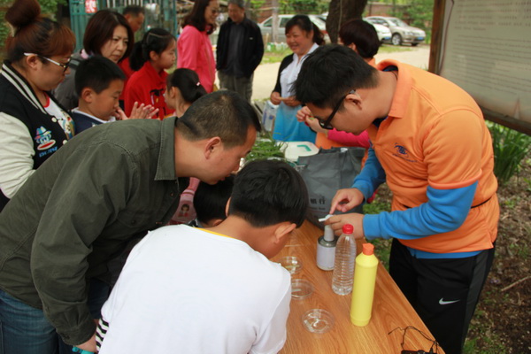 沈阳生态所的公众科学日活动以“花朵的奥秘”为主题,主要分为“花朵探秘”、“自然足迹”和“舌尖上的安全”三个部分,突出了绿色、生态的特点。在“花朵探秘”部分,通过科普志愿者讲解,孩子们了解了植物的季节变化,了解了由花至果的生长变化是如何发生的?;疃刑乇鹪黾印氨媸段疑肀叩囊安恕被方?,让久居城市的参与者有机会了解和辨识野菜,获得了强烈好评?!白匀蛔慵!被疃?,科普志愿者鼓励孩子观察植物的萼片、花托、花瓣等结构,手把手地指导孩子们亲手制作植物标本。“舌尖上的安全”科普部分,通过现场实验,让公众直观地了解食物中可能存在的隐患,传播安全、健康的膳食观念。