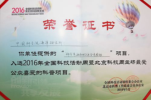海洋研究所以海洋科学考察成果为主题,精心制作了我国最先进的海洋科学考察船——“科学”号模型、“发现”号ROV深海潜器等调查设备模型,并展出了“科学”号深??瓶际悠狄约吧詈I镅返?,介绍了海洋所深??瓶甲钚卵芯砍晒?。展览期间,邀请了多次参加深??蒲Э疾斓目蒲Ъ矣牍诿娑悦娼涣?,讲解设备原理,分享科考经历,交流科考成果,把高深的科学知识用科普的语言表达出来,揭开了科考的神秘面纱,与公众拉近了距离,取得了很好的科普效果。