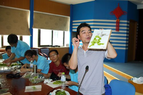 营员潮间带采集海洋藻类 老师现场讲解藻类标本制作方法