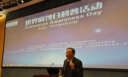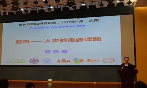 活动中,世界腐蚀组织主席、中国科学院沈阳分院院长、中国科学院金属研究所研究员韩恩厚为社会公众做了题为“腐蚀--人类的重要课题”的精彩报告。他从什么是腐蚀、腐蚀给我们日常生活带来的威胁、对国家的重大工程如航天、核电、油气、高铁和桥梁等造成的重要影响,以及如何控制和利用腐蚀等方面进行了全面的介绍。